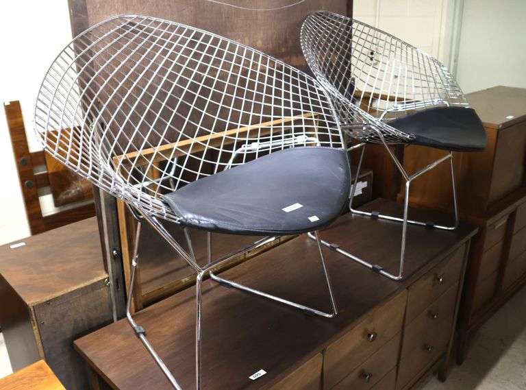 LOT 694 - Pair Bertoia Style Chrome Chairs