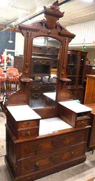 LOT 276 - Victorian Marble Top Walnut Drop Center Dresser, As-Is