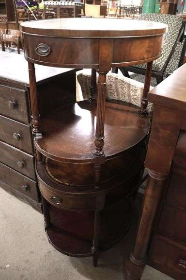 LOT 806 - Pair Colonial Revival Leather Top Mahogany End Tables