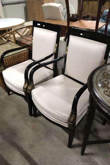 LOT 772 - Pair French Empire Style Black Lacquer Armchairs