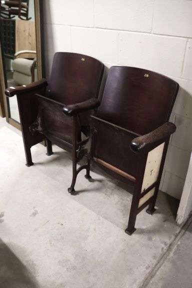 LOT 750 - Antique Two-Seat Folding Theater or Stadium Bench