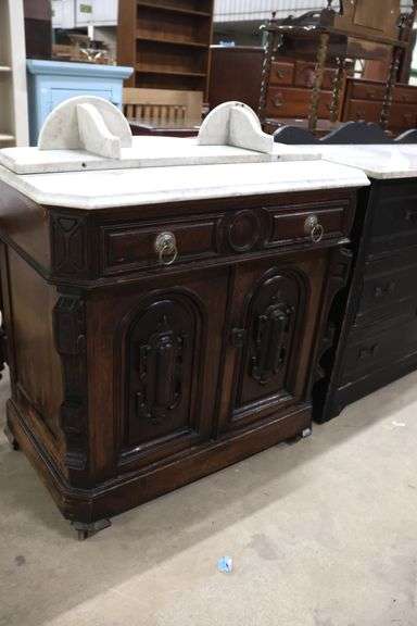LOT 377 - *NO STORAGE* Victorian Marble Top Walnut Washstand, Missing Pins
