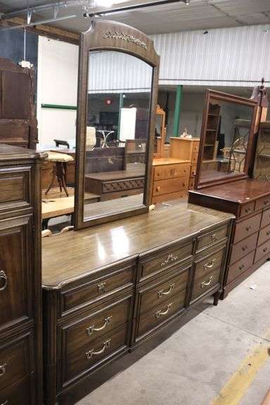 LOT 351 - Henredon MCM Directoire Style Nine Drawer Dresser with Mirror