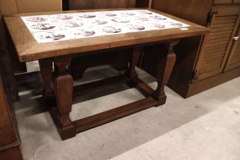 LOT 337 - Continental Delft Tile Top Oak Coffee Table