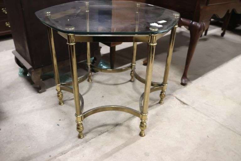 LOT 305 - MCM Glass Top Brass Cocktail Table