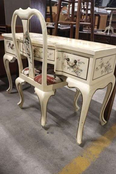 LOT 291 - Hollywood Regency Ivory Lacquer Desk with Chair, Wear