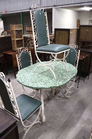 LOT 258 - MCM Wrought Iron and Chip-Stone Design Dining Table and Four Chairs, Wear