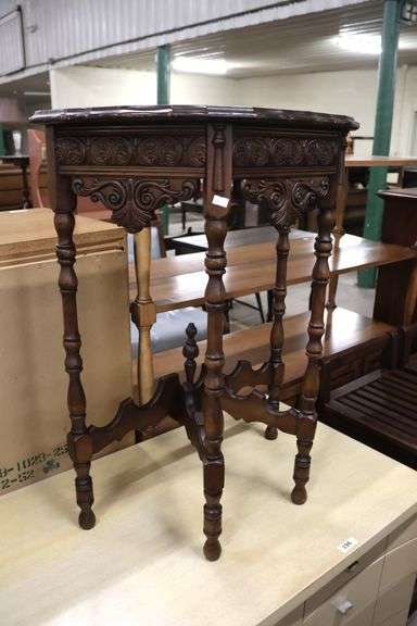 LOT 195 - Depression Era Carved Side Table, Top As-Is