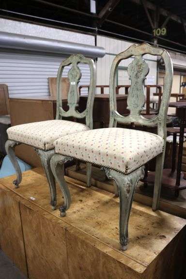 LOT 73 - Pair Venetian Rococo Paint Decorated Side Chairs